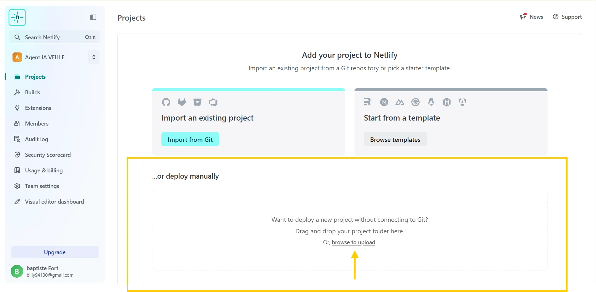 On va utiliser Netlify (gratuit, rapide, aucun code).